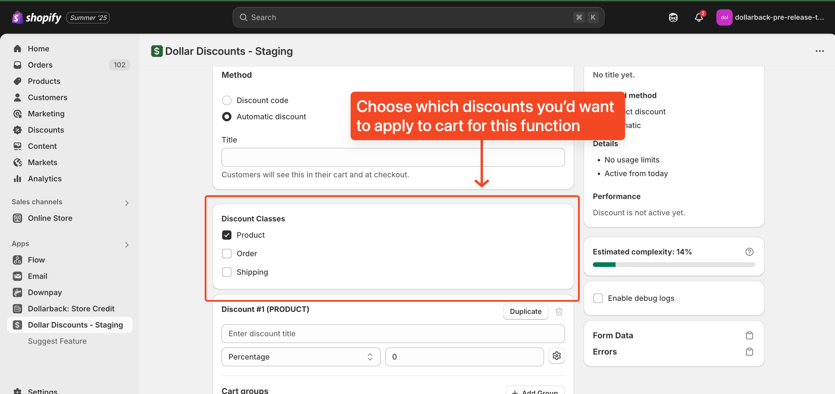 Discount classes are only available on Unified Discount Engine (v2) and not on Discount Engine (v1) and other functions offered by Dollarlabs. This is based on the unified discounts architecture detailed by [Shopify](https://shopify.dev/docs/api/functions/latest/discount?example=create-combined-multi-type-discounts).